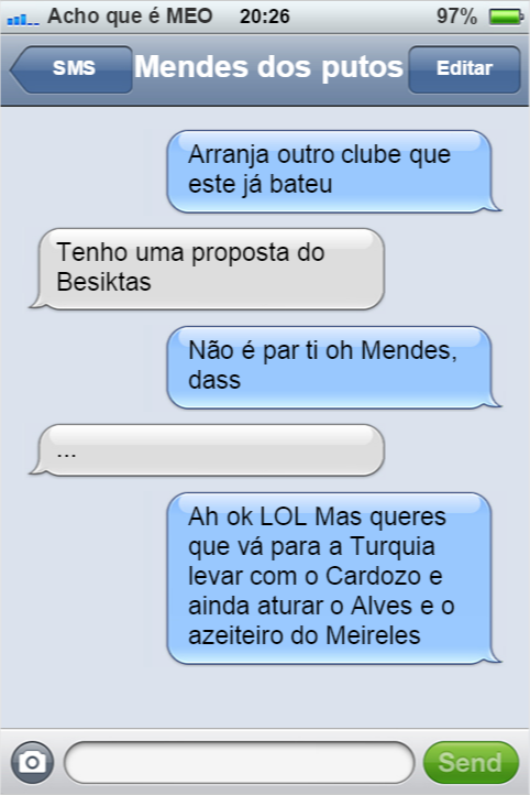 - Já mandou alguém do foculporto para o c****?
