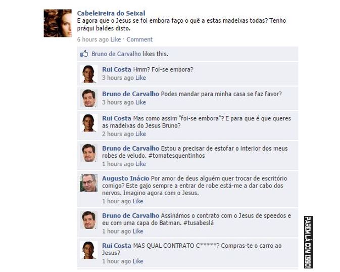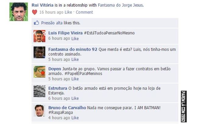 Mas como no Parem lá com Isso! gostamos de estar sempre na vanguarda, temos nós também as nossas próprias fontes, que nos dizem que o Maxi é jogador do Benfica até 30 de junho, que o Lima e o Jonas também o são, que o Eliseu deve ter comido alta pratada hoje ao almoço, que o Salvio fez uma churrascada no sábado e que o Jesus é afinal burro como o caralho.